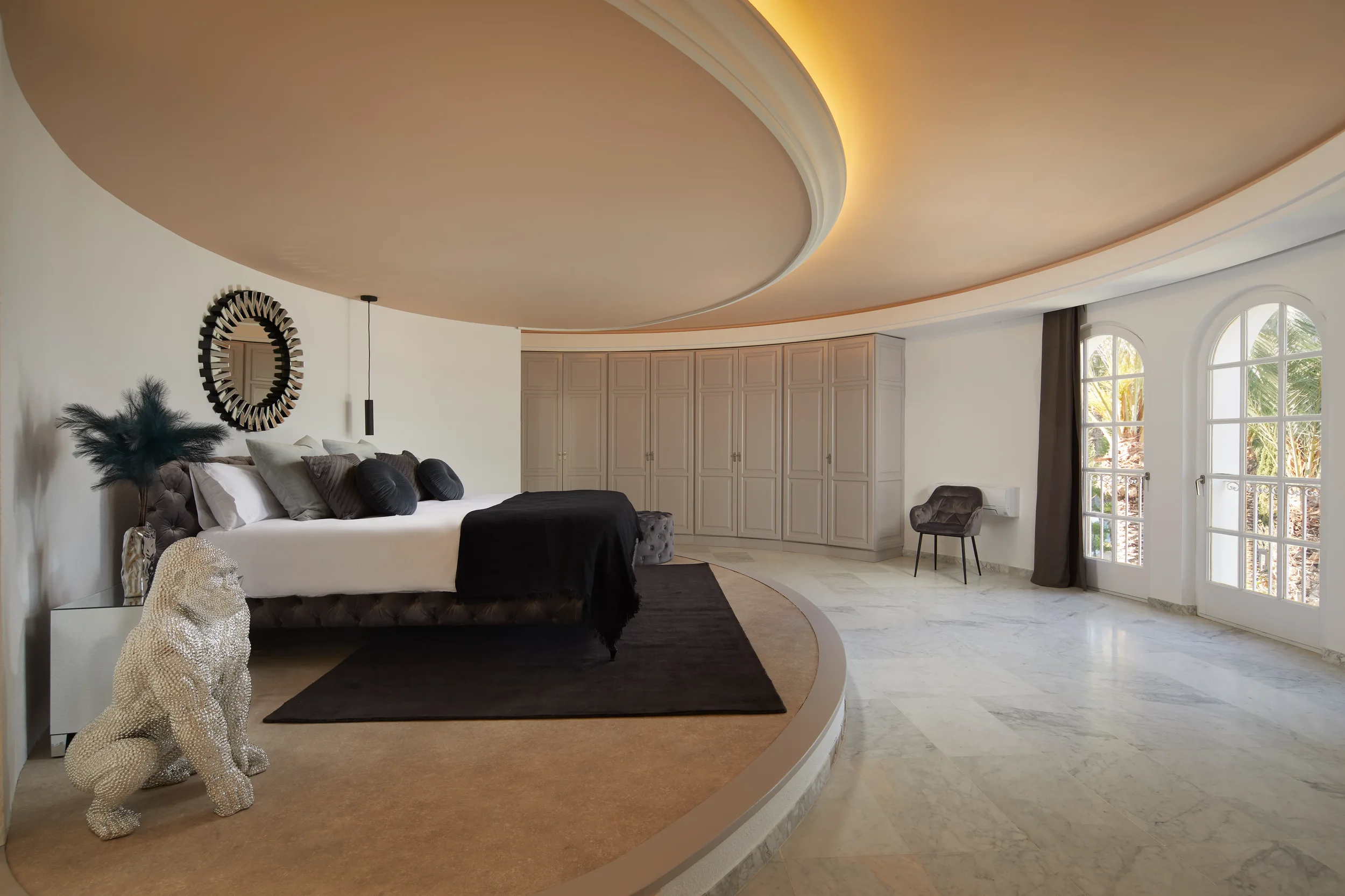Inside, the villa offers 4 grand suites with private service, along with 3 additional suites that overlook the pool and gardens. You’ll also find a child's room and staff quarters, making this property ideal for families, VIP groups, or private retreats. Every suite is uniquely styled and finished with high-end materials, walk-in closets, flat-screen TVs, and luxurious en-suite bathrooms. The main suite features its own fireplace and hydro-massage bath, making it the perfect private sanctuary.