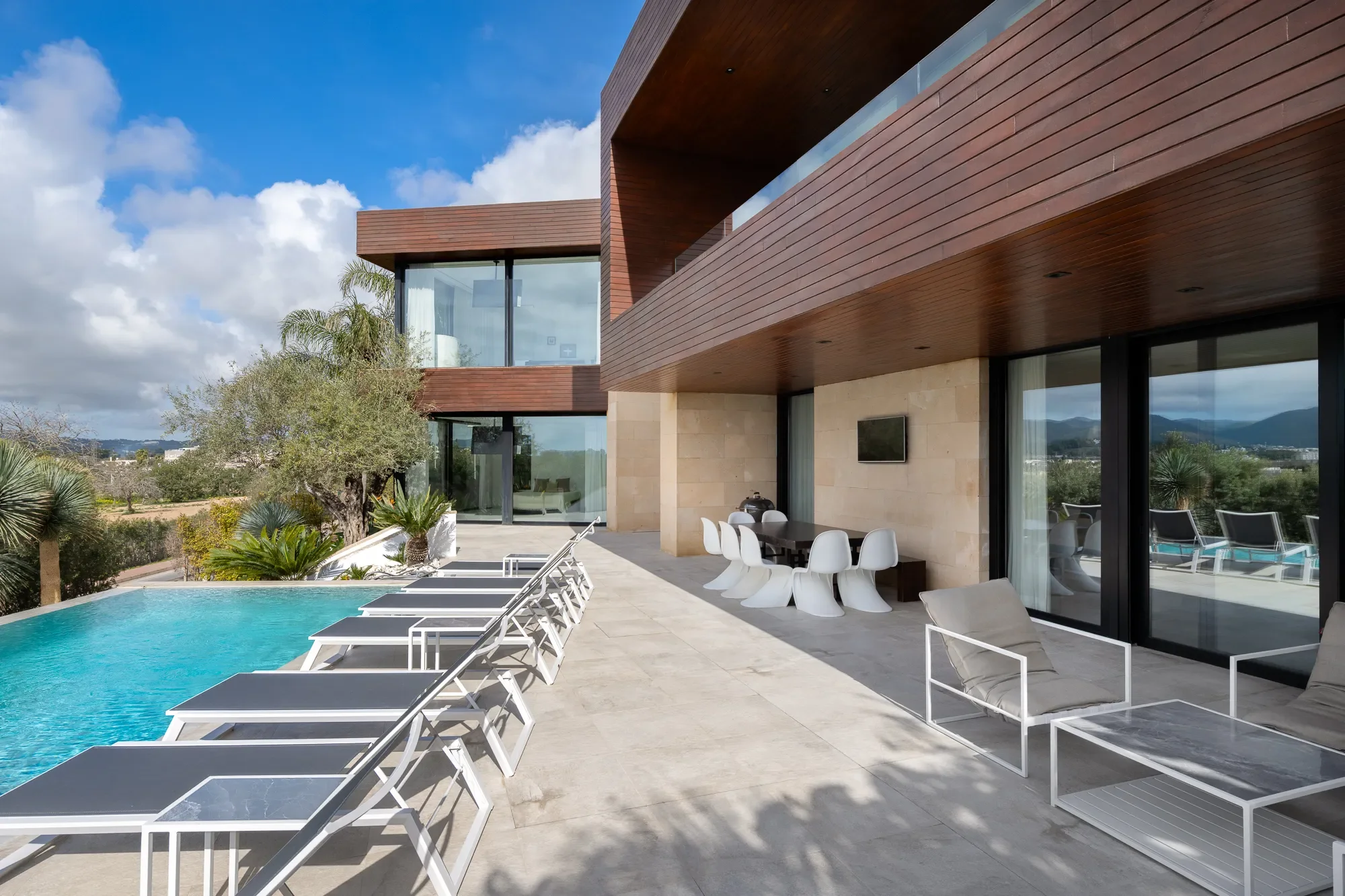 Outside, the villa offers a private swimming pool, sun terrace, and a shaded outdoor dining area with BBQ, perfect for relaxing days and sunset dinners with friends or family.