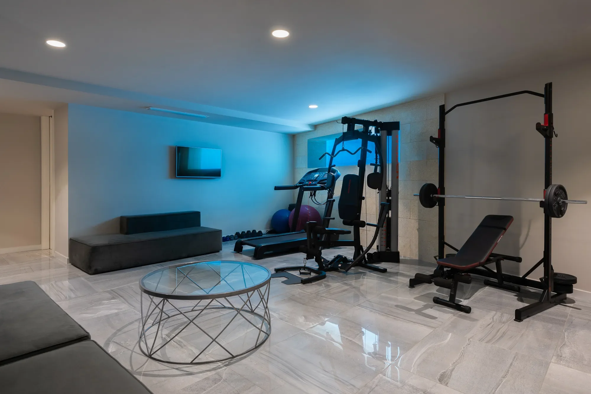 The villa also includes a fully equipped guest apartment with its own kitchen, ideal for staff or additional guests, along with a private gym and even a club-style space on the lower floor for late-night lounging.